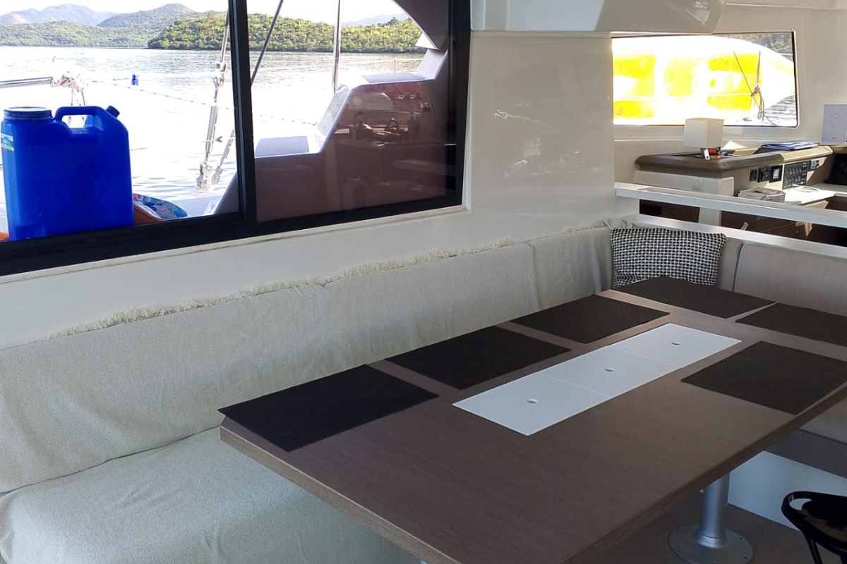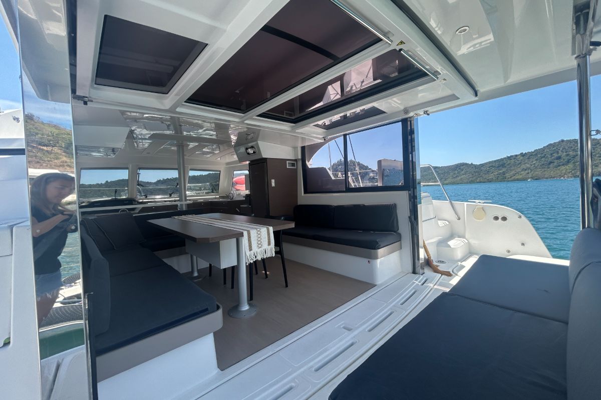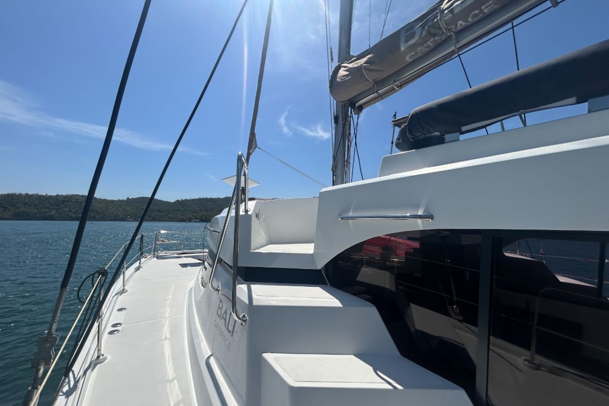 The catamaran features an open-plan layout with a bright saloon, a fully equipped galley, an expansive deck spaces, a forward cockpit, and a flybridge with a panoramic view and lounging. With a professional crew of 4 providing personalized service, the Bali Catspace ensures an unforgettable island-hopping adventure in ultimate comfort. Based in Busuanga, it is ideally positioned for charters in Coron, and El Nido.