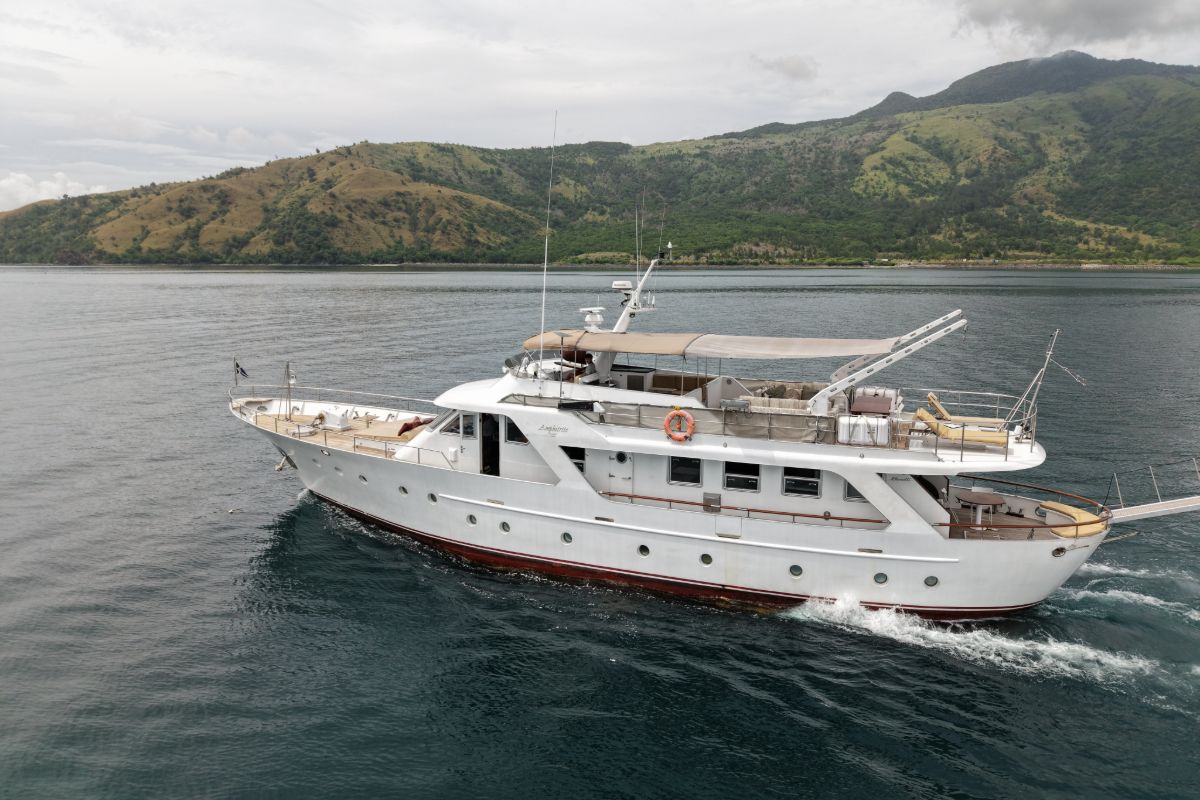 Set sail on our iconic 82-foot Benetti Navetta 26d motor yacht, and experience the Philippines’ breathtaking islands in timeless elegance. Crafted in 1973 and impeccably refitted, this steel-hulled beauty blends classic Italian design with modern comforts, offering a 2,600-nautical-mile range for epic adventures from Palawan’s hidden lagoons to Cebu’s vibrant reefs. With four plush en-suite cabins for up to 8 guests, a dedicated Filipino crew, and amenities like Starlink Wi-Fi, gourmet dining, and water toys, Amphitrite promises bespoke charters perfect for romantic getaways, family voyages, or corporate retreats.