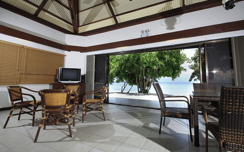 The two Island Suites offer a harmonious blend of intimate comfort and beachfront proximity, ideal for a romantic escape or a small family unit desiring their own dedicated space on the private island. Fully air-conditioned and furnished with a generous double bed, each suite is a self-contained haven of tranquility designed to maximize connection with the stunning environment.
