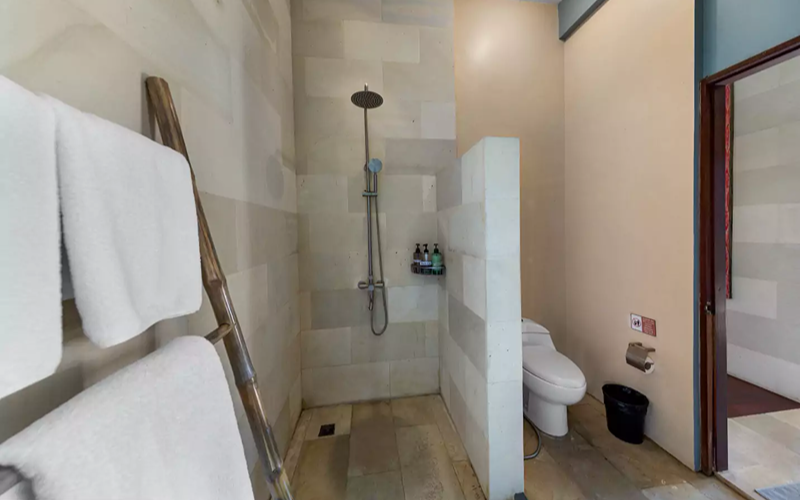 The villa provides generous indoor-outdoor living: a spacious living room, a full kitchen, expansive balconies, and a private infinity pool set on a Java-stone terrace. The semi-outdoor marble bathrooms, king beds in each bedroom, and a sofa bed make it ideal for families or groups wanting both privacy and shared comfort.