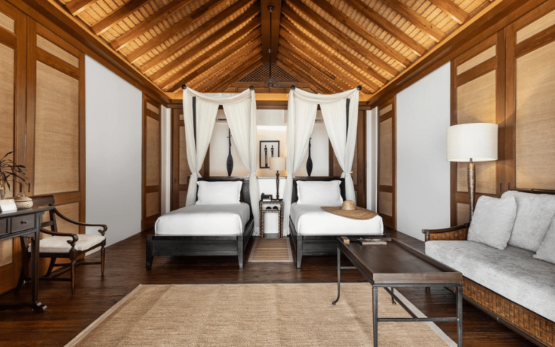 Set within a secluded cove on the island’s west side, the Kalaw Villas are ideal for families or small groups seeking privacy. Each villa offers spacious interiors, two master bedrooms, and expansive verandas with calming views of the beach and surrounding gardens. With direct access to a quiet stretch of sand, the Kalaw Villa is both a private hideaway and a perfect base for shared moments and gatherings.