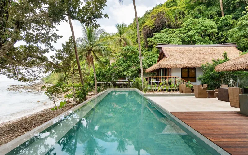 Pangulasian Island Resort, part of the award-winning El Nido Resorts group founded in 1979, stands out as the most luxurious eco-luxury hideaway in the Philippines’ Palawan archipelago. This 5-star private island retreat blends contemporary Filipino architecture with sustainable “green” design principles, offering 42 spacious villas perched between a pristine white-sand beach and lush tropical forest.