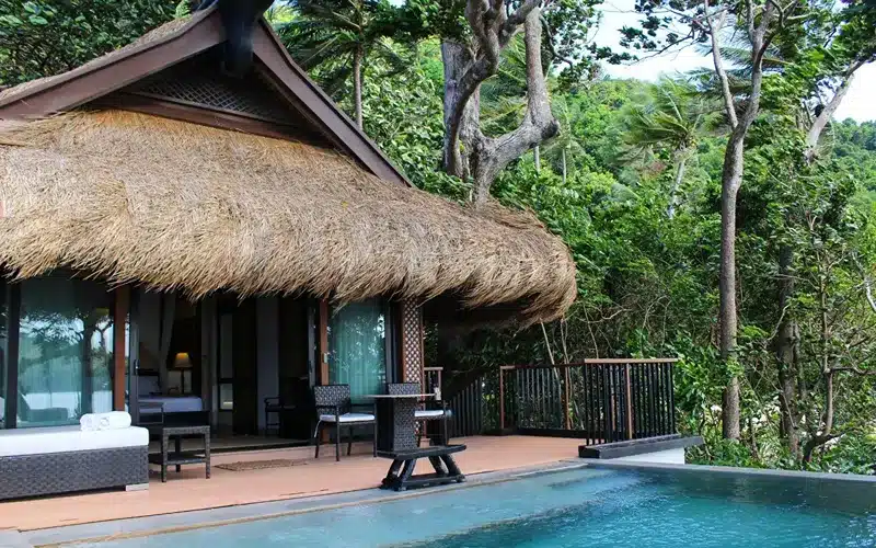 Indulge in refined comforts across Pangulasian’s 42 eco-villas, including Beach Villas with direct sand access, elevated Canopy Villas amid the treetops, and private Pool Villas featuring plunge pools and ocean views. The central hub boasts an infinity-edge outdoor pool with loungers, a state-of-the-art gym, a tranquil spa offering Asian-inspired massages, body treatments, and facials in a forest bungalow setting. A 24-hour front desk and gift shop round out the offerings, all harmoniously integrated to foster relaxation without compromising the island’s natural serenity.